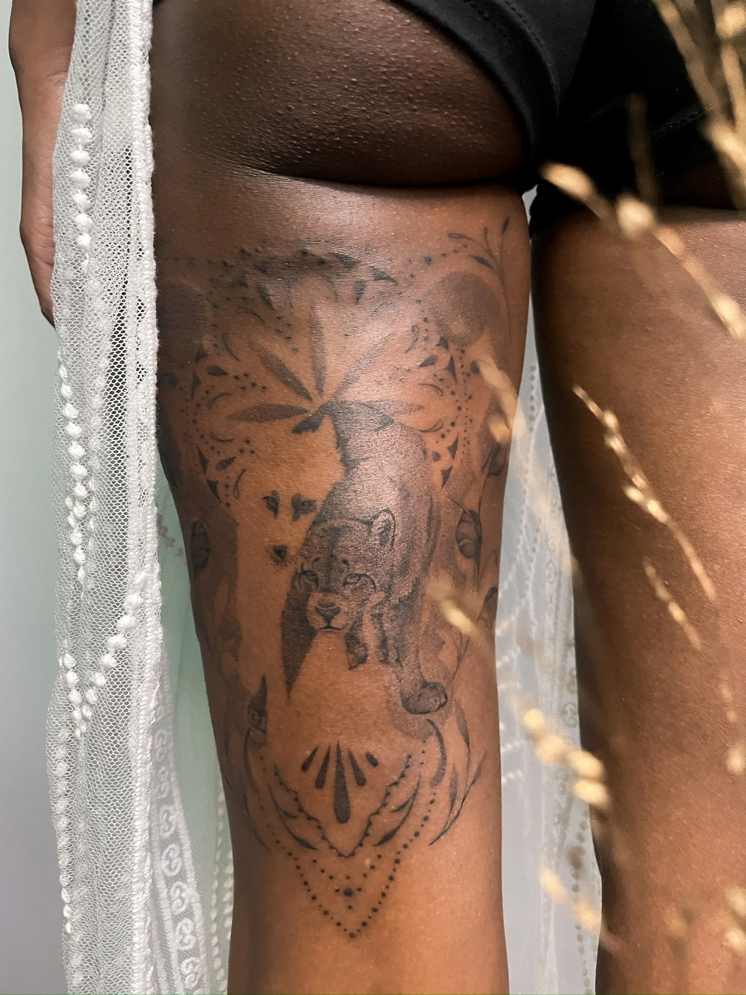 Ma passion pour cet art s'est intensifiée après m'être fait tatouer suite à des problèmes de santé, j'ai pu me réapproprier mon corps et reprendre confiance en moi. C'est dans cette optique, avec douceur et bienveillance que je vous tatoue.